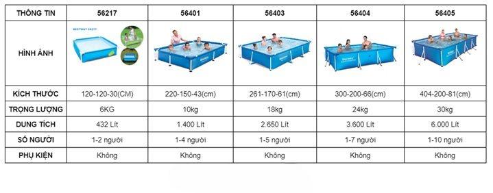 Thông số chi tiết sản phẩm bể bơi: