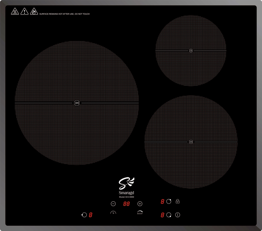 Bếp từ Smaragd SI3-9999 gồm 3 vùng nấu với tổng công suất 6500W, đường kính mâm từ phù hợp với nhiều tiết diện vật dụng nấu khác nhau. Chức năng Booster nấu siêu nhanh, tuy nhiên thời gian tối đa mặc định dùng chức năng này là 10 phút / lần tránh quá tải.