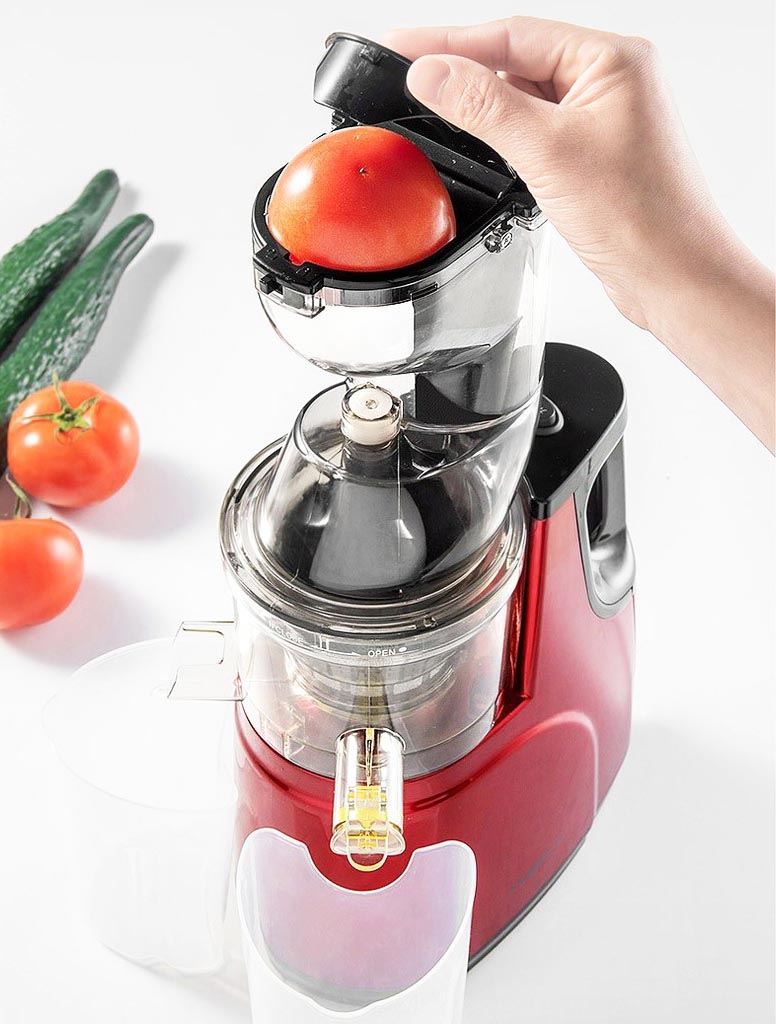 - Một ưu thế của dòng Máy ép chậm nguyên quả Nineshield KB-F8B là miệng to – bạn có thể ép cả quả mà không phải tốn công cắt nhỏ như dòng máy cũ “ miệng nhỏ” . Thêm 4 vòng xoắn ốc giúp việc ép nước quả mạnh mẽ hơn, vắt kiệt nước – cho nước tối đa, phân tách bã riêng cho nước ép ngon hơn.