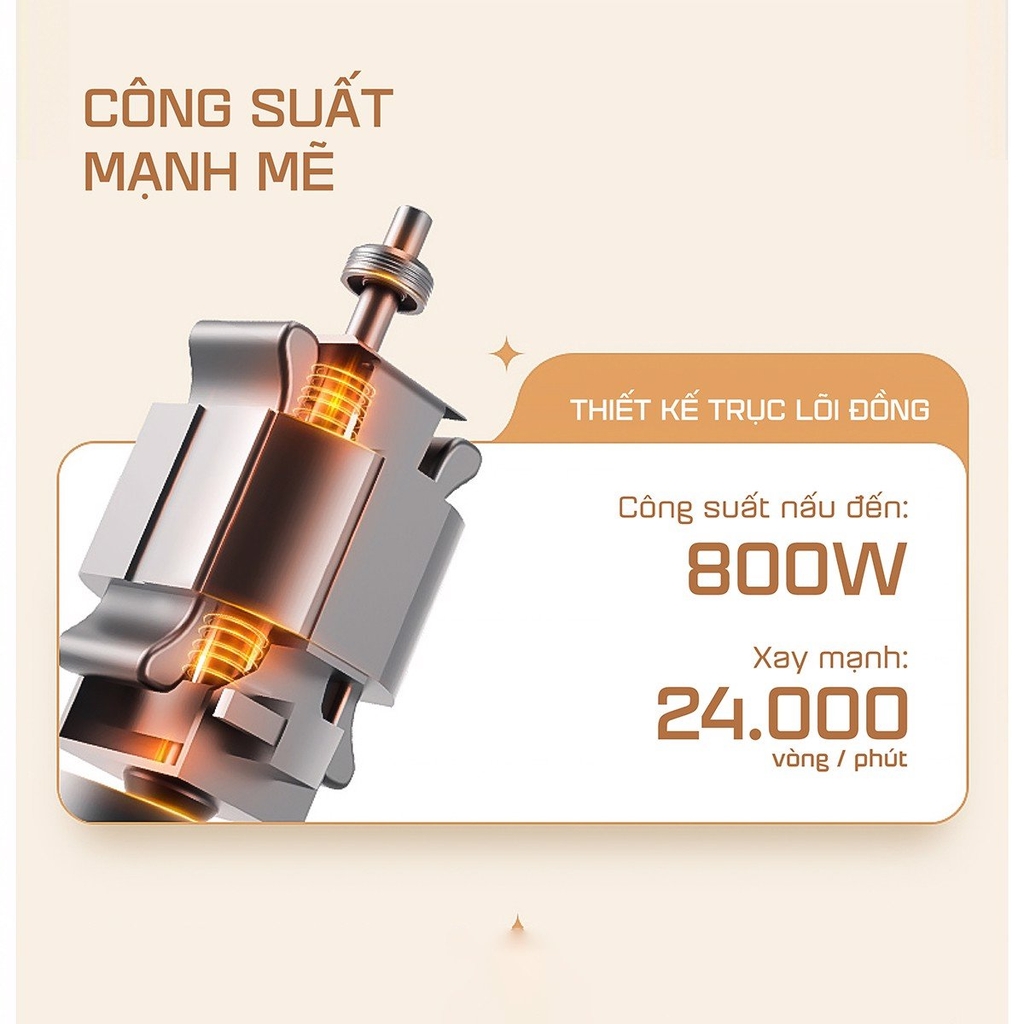 Công suất: 800W : Công suất nấu 800W, Công suất xay: 200W
