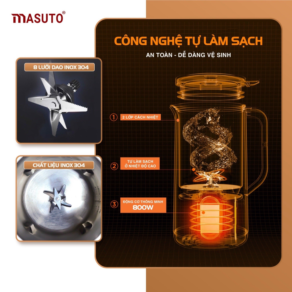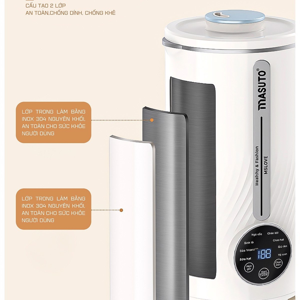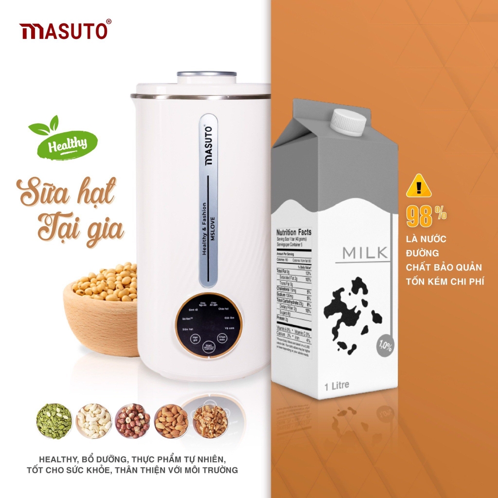 Ngày nay, nhu cầu sử dụng sữa hạt, các thực phẩm hữu cơ lành tính, an toàn đang trở nên phổ biến hơn trong thói quen ăn uống của người tiêu dùng. Nhằm đáp ứng nhu cầu ăn uống lành mạnh và tạo thực phẩm ăn uống đầy đủ chất dinh dưỡng đảm bảo an toàn vệ sinh tại nhà, Masuto đã cho ra đời siêu phẩm “Máy làm sữa hạt MSLOVE”, một sản phẩm kết hợp hoàn hảo giữa công nghệ và sáng tạo hướng đến nhu cầu của người tiêu dùng được sử dụng để chế biến loại hạt khác nhau như hạnh nhân, đậu phụng, đậu đen, đậu xanh, hạt chia… thành bột mịn, sau đó hoà tan bột hạt này vào nước để tạo thành sữa hạt tươi ngon. Với sản phẩm máy làm sữa hạt MSLOVE bạn có thể tự chế biến tại nhà mà không cần lo lắng chất lượng không đảm bảo của sữa hạt được mua từ thị trường bên ngoài.