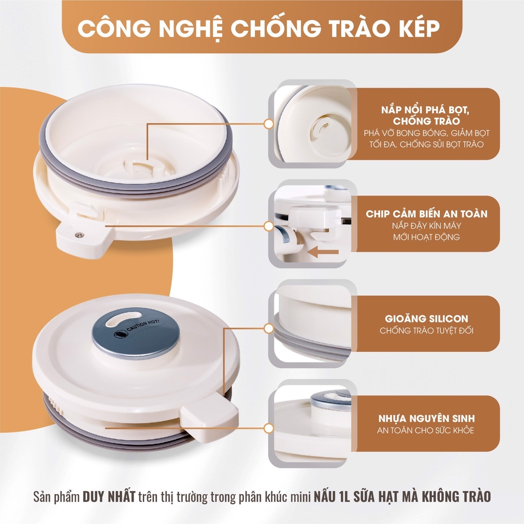 Tính năng: 10 tính năng thông minh: Nấu sữa hạt, Sữa lạnh Vitaric, Sinh tố, Cháo ngũ cốc, Cháo ăn dặm, Cháo hạt, Giữ ấm, Vệ sinh, Hẹn giờ, Chọn món.