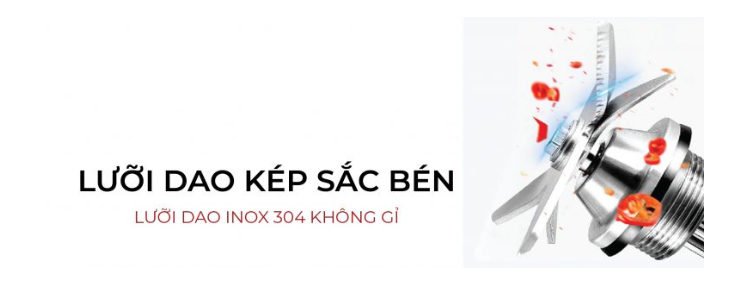 - Lưỡi dao inox 304 sắc bén, xay nhuyễn mọi nguyên liệu