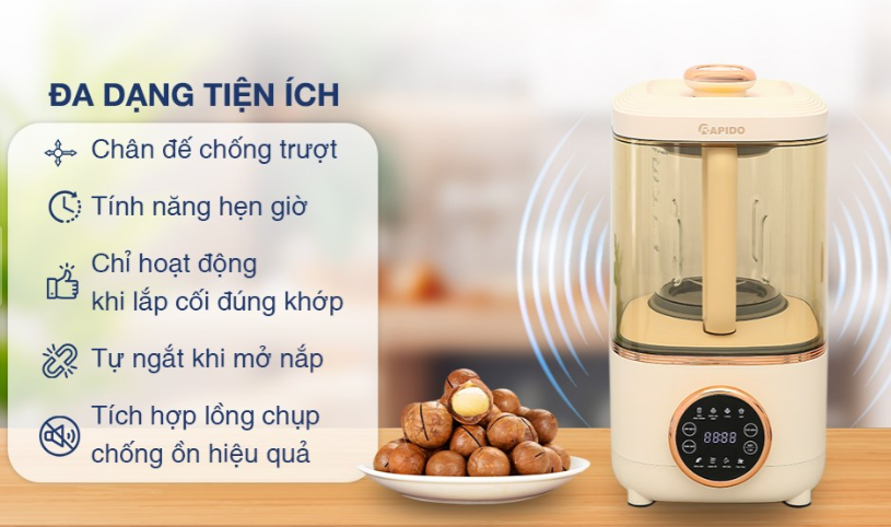 MÁY LÀM SỮA HẠT RAPIDO RHB-600D...- TÍCH HỢP LỒNG CHỤP GIẢM 30% TIẾNG ỒN KHI MÁY HOẠT ĐỘNG