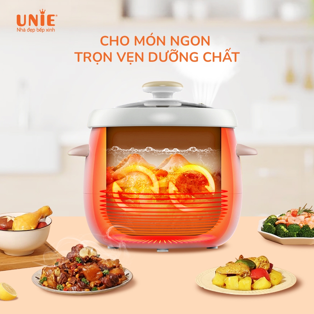 Ninh nấu nhiều giờ, cho món ngon trọn vẹn dinh dưỡng với nồi nấu chậm Unie USC10W. Chỉ cần cho nguyên liệu, chọn chức năng, món ăn ngon dành cho trẻ nhỏ, cho ông bà hay cả gia đình… sẽ tự động được hoàn thành mà chẳng cần tốn thời gian theo dõi, canh nhiệt độ, thời gian.