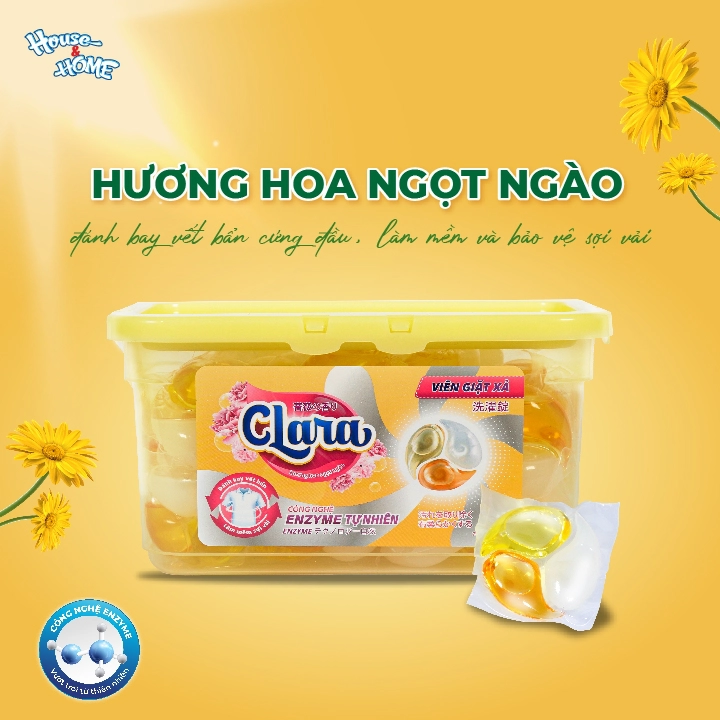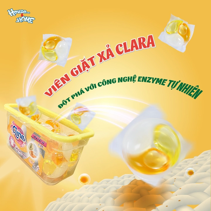 Enzyme được biết đến là chất xúc tác sinh học lành tính có khả năng phân tách các chất bẩn hiệu quả mà không ảnh hưởng tới bề mặt tiếp xúc, thân thiện với môi trường. Chính vì vậy, Clara đã nghiên cứu và ứng dụng công nghệ enzyme tự nhiên từ Nhật Bản vào viên giặt xả Clara 3in1 để mang lại hiệu quả 3 tác động vượt trội: Sạch nhanh vết bẩn; loại bỏ ẩm mốc và làm mềm sợi vải; lưu hương bền lâu. Đặc biệt bảo vệ làn da, an toàn cho người dùng.